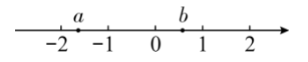 实数 $a , b$ 在数轴上对应点的位置如图所示,则 $-a$ $b($ 填$ >, =, < $)