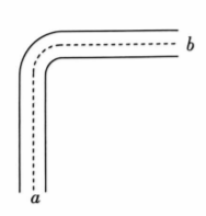 2023 年 1 月, 由中国航天科工三院磁电总体部抓总研制的国内首台“管道磁浮高精度智 能无人巡检车”, 在山西省大同市阳高县高速飞车试验基地, 成功完成管道动态测量与检测一体 化的快速高精度智能化无人巡检试验。假设该巡检车经过的某段管道如图所示, 巡检车沿图中 虚线从 $a$ 处由静止开始运动到 $b$ 处, 由两段长度均为 $20 \mathrm{~m}$ 的直线段和半径为 $R=5 \mathrm{~m}$ 的 $\frac{1}{4}$ 圆弧 段组成。为了保证巡检效果, 车沿直线运动的最大速度为 $5 \mathrm{~m} / \mathrm{s}$, 沿圆弧段运动的最大速度为 $3 \mathrm{~m} / \mathrm{s}$, 巡检车的最大加速度为 $2 \mathrm{~m} / \mathrm{s}^2$ 。求: