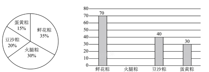 临近端午节,某学校数学兴趣小组到社区参加社会实践活动,帮助有关部门了解某小区居民对去年销量较好的鲜花粽、火腿粽、豆沙粽、蛋黄粽四种粽子的喜爱情况.在对该小区居民进行抽样调查后,根据统计结果绘制如下统计图