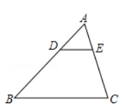 如图,在 $\triangle \mathrm{ABC}$ 中, $\mathrm{D} 、 \mathrm{E}$ 分别为 $\mathrm{AB} 、 \mathrm{AC}$ 上的点,若DE // BC, $\frac{A D}{A B}=\frac{1}{3}$ ,则 $\frac{A D+D E+A E}{A B+B C+A C}$ $=$