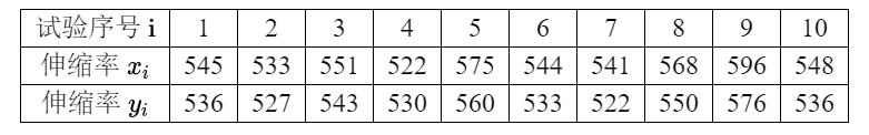 某厂为比较甲乙两种工艺对橡胶产品伸缩率的处理效应, 进行 10 次配对试验, 每次配对试验选用材质相 同的两个橡胶产品, 随机地选其中一个用甲工艺处理, 另一个用乙工艺处理, 测量处理后的橡胶产品的 伸缩率, 甲、乙两种工艺处理后的橡胶产品的伸缩率分别记为 $x_i, y_i(\mathrm{i}=1,2, \cdots 10)$, 试验结果如下