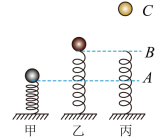 把一定质量的小球放在竖直放置的轻弹簧上,并把小球往下按至 A位置,如图甲所示。迅速松手由静止释放小球,弹簧把小球弹起,小球升至最高位置 C(图丙),途中经过位置B时弹簧正好恢复原长(图乙)。弹簧质量和空气阻力均可忽略。下列说法正确的是