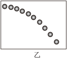 (2)还可以用频闪照相的方法研究平抛运动水平分运动的特点。图乙所示的频闪照片中记录了做平抛运动的小球每隔相等时间的位置。有同学完成必要的测量后认为,小球在水平方向做匀速直线运动,其判断依据是 ________ 。