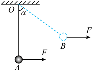 不可伸长的细线下端系一小球,上端悬挂在固定点O。现用水平力 F缓慢地将小球从最低点A 拉至如图所示的位置B。则小球从A点运动到B点的过程中