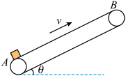 利用如图所示的传送带由低处向高处运送货物,将货物由传送带最低端A处静止释放,货物先做匀加速运动,后做匀速运动到B点,已知货物质量为m、传送带速度大小为v,传送带与水平方向夹角为θ,传送带与货物间的动摩擦因数为μ(μ>tanθ),AB间距离为l,重力加速度为g。电动机与传送带间不发生相对滑动,则在货物从A运送到B的过程中,求: