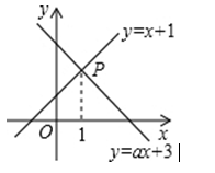 如图, 已知函数 $y=x+1$ 和 $y=a x+3$ 图象交于点 $P$, 点 $P$ 的横坐标为 $1$, 则关于 $x,y$ 的方程组 $\left\{\begin{array}{l}x-y=-1, \\ a x-y=-3\end{array}\right.$的解是