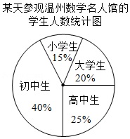 如图是某天参观温州数学名人馆的学生人数统计图.若大学生有60人,则初中生有