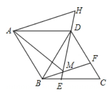 如图, 在菱形 $A B C D$ 中, $A B=B D$, 点 $E 、 F$ 分别在 $B C 、 C D$ 上, 且 $B E=C F$, 连接 $B F 、 D E$交于点 $M$, 延长 $E D$ 到 $H$ 使 $D H=B M$, 连接 $A M, A H$, 则以下四个结论: