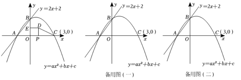 如图, 已知直线 $y=2 x+2$ 与抛物线 $y=a x^2+b x+c$ 相交于 $A, B$ 两点, 点 $A$ 在 $x$ 轴上, 点 $B$ 在 $y$ 轴上, 点 $C(3,0)$ 在抛物线上.