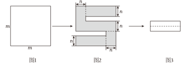 如图1, 将一个边长为 $m$ 的正方形纸片剪去两个小长方形得到一个如图 2 所示的图形, 再将剪下的两个小长方形拼成如图 3 所示的一个新的长方形, 则图 3 中的长方形的周长为