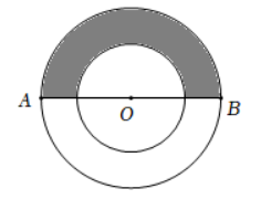 如图, 圆环中大圆的半径为 $r$, 小圆的半径为 $\frac{r}{2}, A B$ 为大圆的直径, 则阴影部分的面积为
