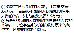 015年8月31日慧聪网报道, 爱唱响内蒙音乐夏令营9月开启, 某学校组织部分学生参加夏令营, 李老师从夏令营咨询处带回如图所示的两条信息, 则原来报名参加夏令营的学生有