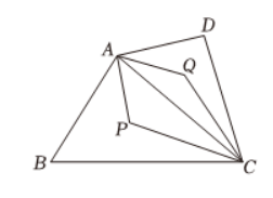 如图, 四边形 $A B C D$ 中, $A C$ 为对角线, 已知 $P 、 Q$ 分别是 $\triangle A B C$ 和 $\triangle A C D$ 内角平分线的交点,若 $\angle A P C+\angle A Q C=250^{\circ}$, 则 $\angle B A D+\angle B C D$ 的值为