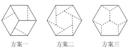 如图, 在 $Z$ 小区内的正六边形花园中铺设道路, 如果图中实线表示水泥路, 虚线表示沥青路, 若按方案一铺设, 共需 315 万元; 若按方案二铺设,共需300万元;若按方案三铺设, 则需要