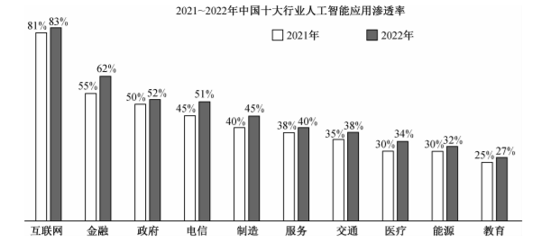 如图为 2021 2022 年中国十大行业人工智能应用渗透率, 则下列说法错误的是