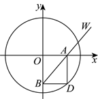 如图, $D$ 为圆 $O: x^2+y^2=1$ 上一动点, 过点 $D$ 分别作 $x$ 轴, $y$ 轴的垂线, 垂足分别为 $A, B$, 连接 $B A$ 并延长至点 $W$, 使得 $|W A|=1$, 点 $W$ 的轨迹记为曲线 $C$.