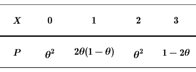 中 $\theta\left(0 < \theta < \frac{1}{2}\right)$ 是未知参数,利用总体 $X$ 的如下样本值 $3,1,3,0,3,1,2,3$ ,求 $\theta$ 的矩估计值和最大似然估计值