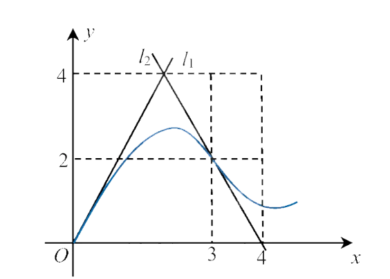 如下图,曲线 $C$ 的方程为 $y=f(x)$ ,点 $(3.2)$ 是它的一个拐点,直线 $l_1$ 与 $l_2$ 分别是曲线 C 在点 $(0,0)$ 与 $(3,2)$ 处的切线,其交点为 $(2,4)$. 设函数 $f(x)$ 具有三阶连续导数,计算定积分 $\int_0^3\left(x^2+x\right) f^{\prime \prime \prime}(x) \mathrm{d} x$.